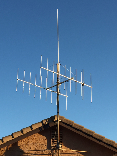 You can see the pair of phased yagi’s on my mast just below the omni. Placement was a bit compromised as I’d like to have had them a bit higher, and a bit further from the omni but they seem to work great. You may also notice they are vertically polarized to match the stations I’m interested in. Performance is great but requires careful pointing of the antennas. I can now solidly get into two repeaters and a RMSGW that were previously only sporaticly heard.