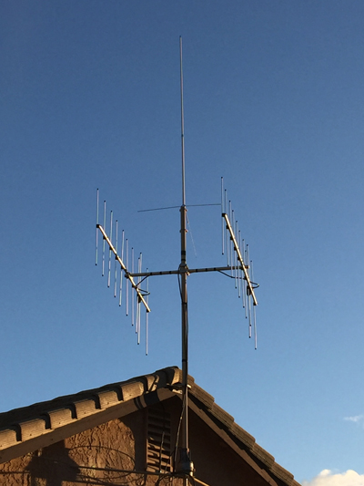 You can see the pair of phased yagi’s on my mast just below the omni. Placement was a bit compromised as I’d like to have had them a bit higher, and a bit further from the omni but they seem to work great. You may also notice they are vertically polarized to match the stations I’m interested in. Performance is great but requires careful pointing of the antennas. I can now solidly get into two repeaters and a RMSGW that were previously only sporaticly heard.