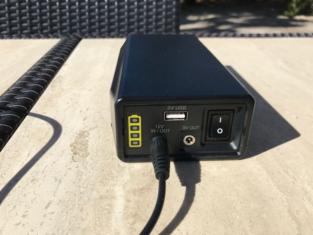 The Elecraft KX2 can operate from internal batteries but for more endurance I opted for an external battery solution. This is a lithium iron phosphate and when fully charged provides over 13 volts to the radio and is rated at 6.5Ah It also has a handy USB port for charging a phone or running a USB device. In testing, I found it would run the transceiver for about two days.