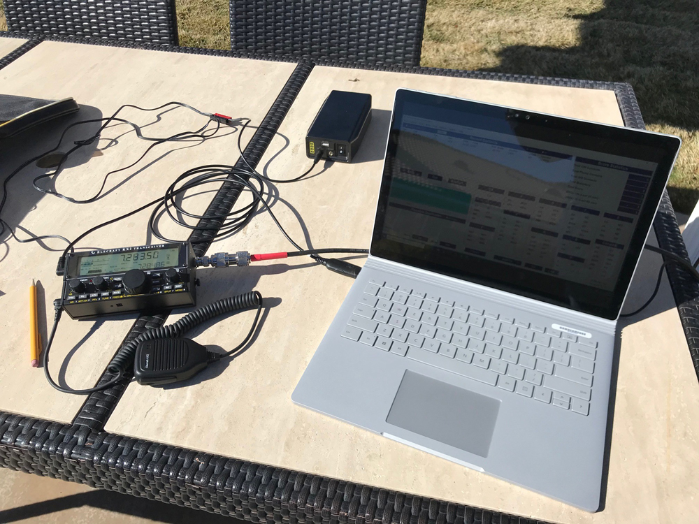 The operating position included the KX2 QRP transceiver, the battery, and the laptop used for logging. I used the N3FJP Logging software for Winter Field day making contact logging very easy. Contacts were made on 40 and 20 meters and there was one station heard on 15 meters. No activity was heard on 10 meters.